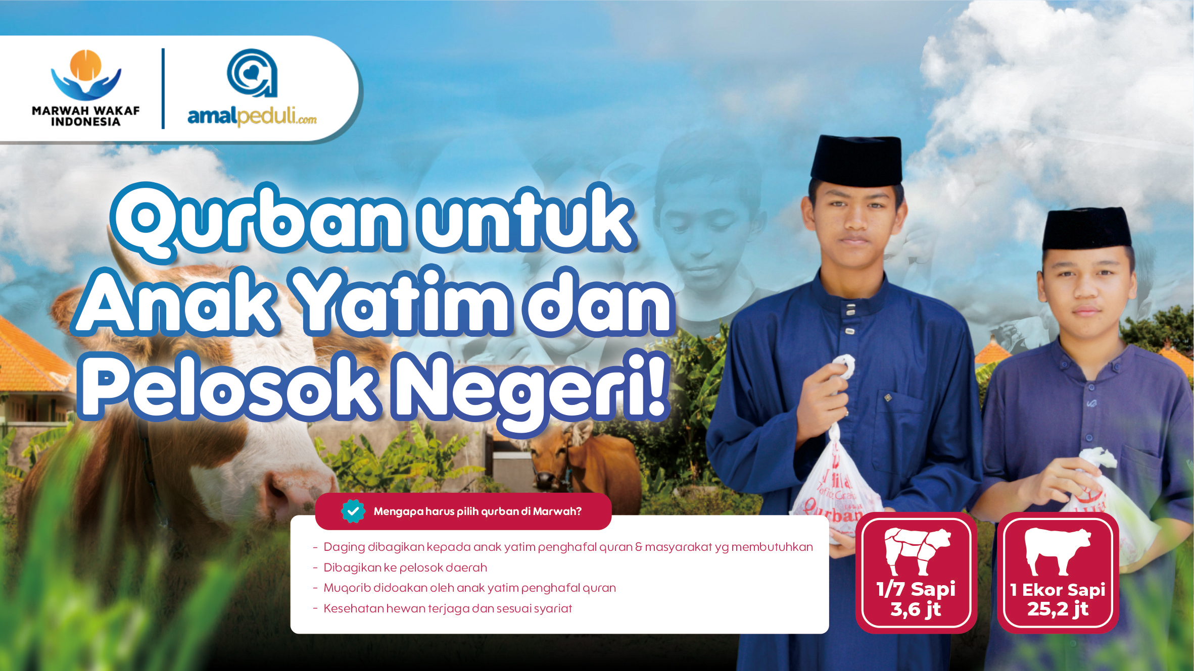 Jangan Takut Berqurban karena setiap tahun Marwah Wakaf Indonesia membentang kebaikan qurban bersama masyarakat Indonesia, Kami Siap menjadi jembatan kebaikan dari titipan qurban anda ke pelosok, desa rawan kemisikinan, minoritas dan rawan pemurtadan yang tidak ada pemotongan hewan qurban di sana.