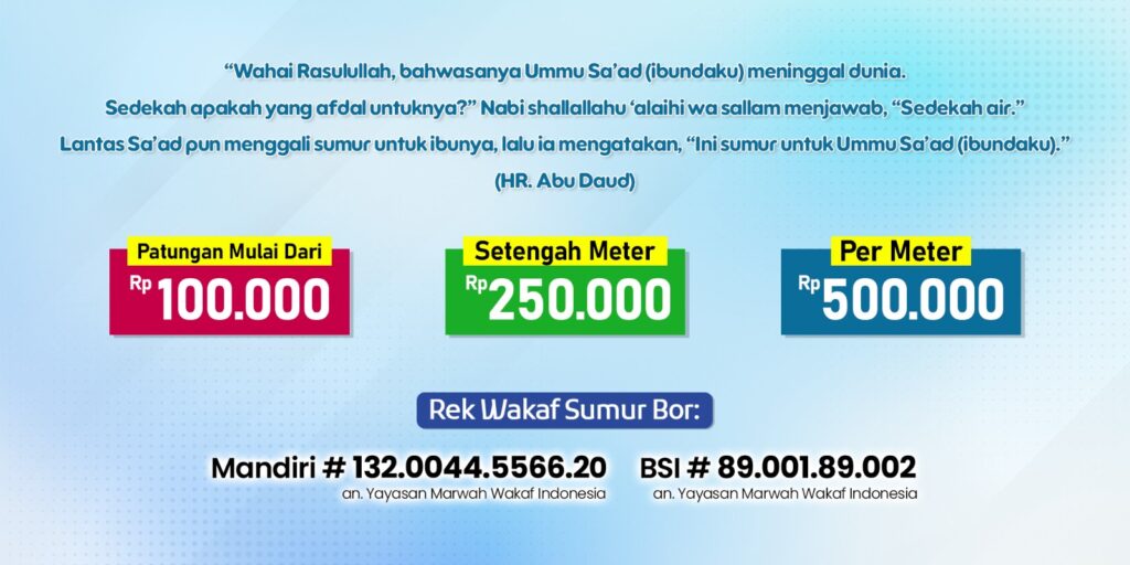 “Wahai Rasulullah, bahwasanya Ummu Sa’ad (ibundaku) meninggal dunia. Sedekah apakah yang afdal untuknya?” Nabi shallallahu ‘alaihi wa sallam menjawab, “Sedekah air.” Lantas Sa’ad pun menggali sumur untuk ibunya, lalu ia mengatakan, “Ini sumur untuk Ummu Sa’ad (ibundaku).” (HR. Abu Daud)